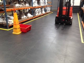 R-Tile Industriële vloeren met zwaluwstaartverbindingen en getextureerd oppervlak worden naargelang de vereisten inzake statische (machines en installaties) en dynamische (transpaletten, heftrucks) belasting aangeboden met dikte 5mm, 7mm of 9mm: